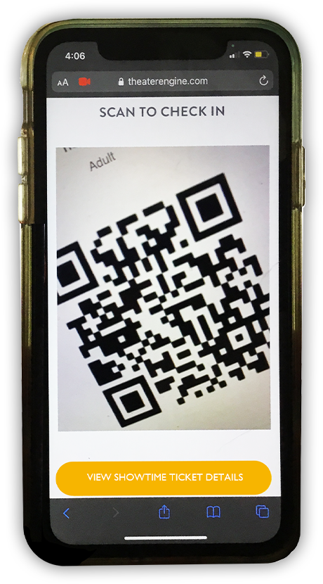 Patrons will receive an emailed receipt with a QR code for each ticket purchased